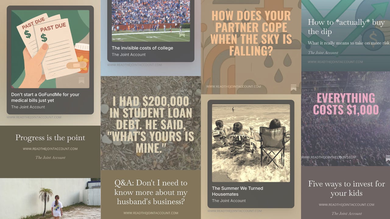 Since Fall 2023, we’ve published more than 100 newsletters here. We published while interviewing real-life couples and best-in-class experts; while drafting, editing, and launching Money Together; and while seeing our wealth management firm, Bone Fide Wealth, through massive change to support its growth. Throughout all this, we intentionally kept The Joint Account simple. Paid subscriptions were technically available for readers to support us, but we didn’t offer anything for them. To be honest, we didn’t want to overpromise while we poured everything into the other stuff we had going on.