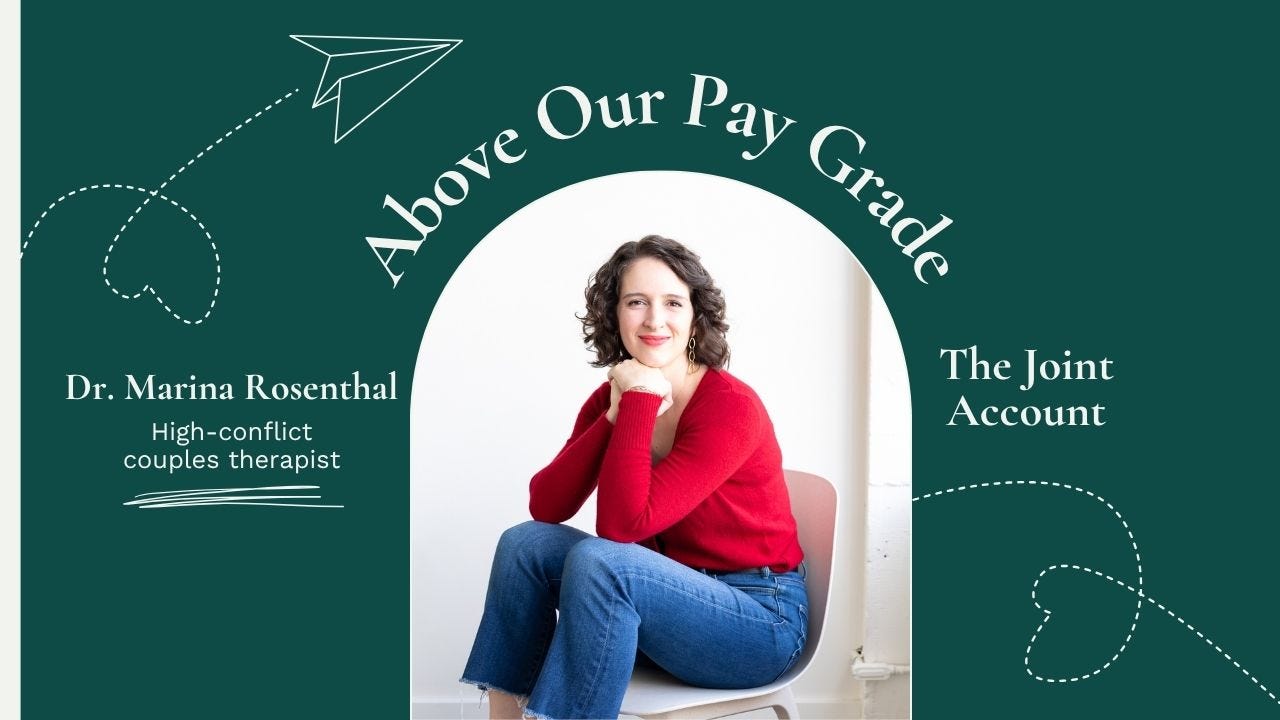 This is the third Above Our Pay Grade, feat. couples therapist Dr. Marina Rosenthal.
